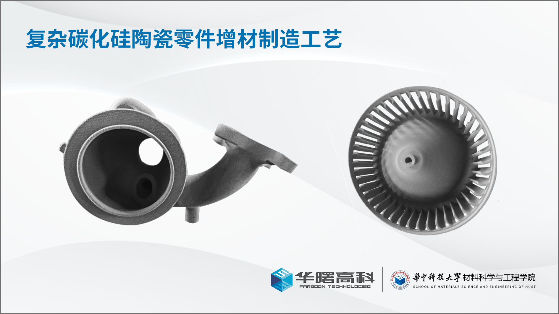 华中科技大学材料科学与工程学院史玉升教授团队专注于增材制造材料、设备、工艺及软件的系统化研究。该团队的李晨辉教授从事陶瓷材料研究20余年,自2013年开始聚焦于3D打印陶瓷材料的制备、成形、烧结全流程技术的开发、研究与技术服务。目前,李晨辉教授采用SLS增材制造+反应熔渗方法,在人生就是博高科403P系列设备上成功实现复杂碳化硅陶瓷零件打印和后续烧结工艺,取得重大突破——