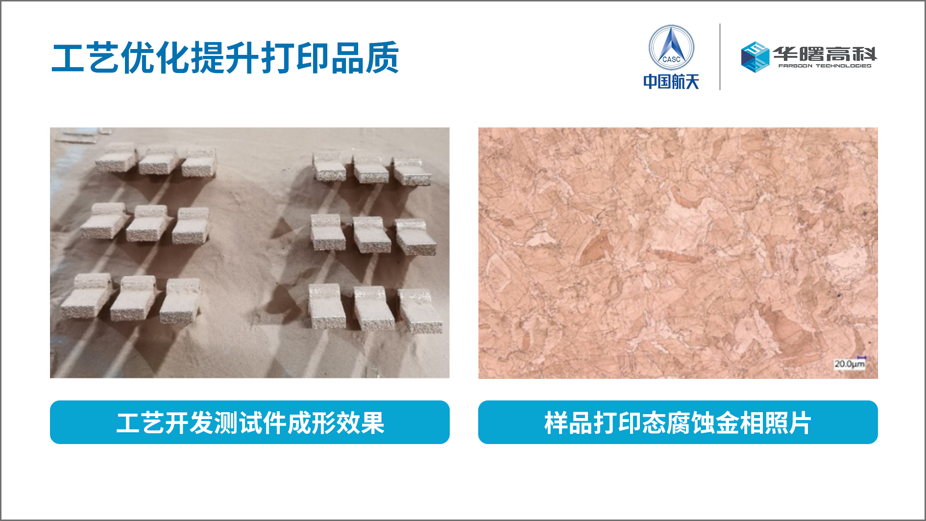 2023年8月,首都航天机械有限公司采用该款设备成功实现某型火箭发动机推力室身部内壁试验件的增材制造,该产品直径达600毫米量级,高度达850毫米量级,是目前公开报道过的最大的整体增材制造铜合金身部产品。其成功研制也标志着首都航天机械有限公司成为国内首批全面掌握大尺寸铬锆铜合金激光选区熔化增材制造技术的单位。该技术突破填补了国内增材制造技术领域的空白,助力发动机生产跑出创新“加速度”。